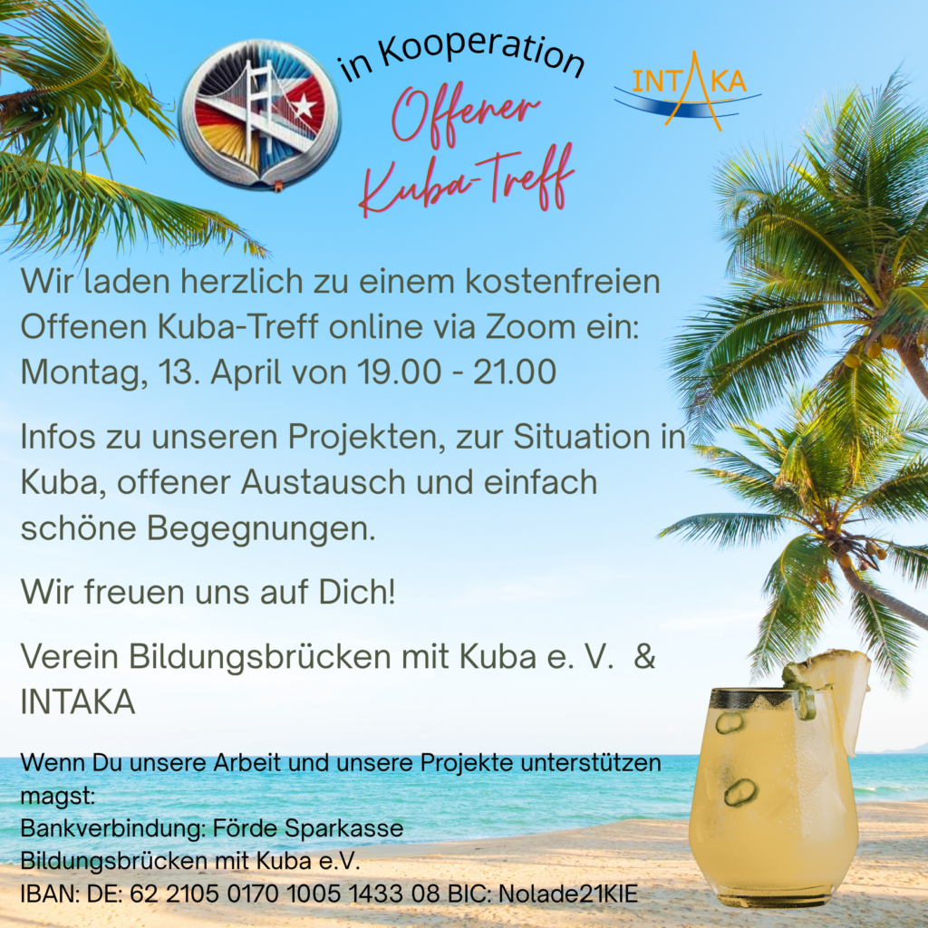 Offenen Kubatreff, am 13.04.2026 von 19.00 – 21.00 Uhr.